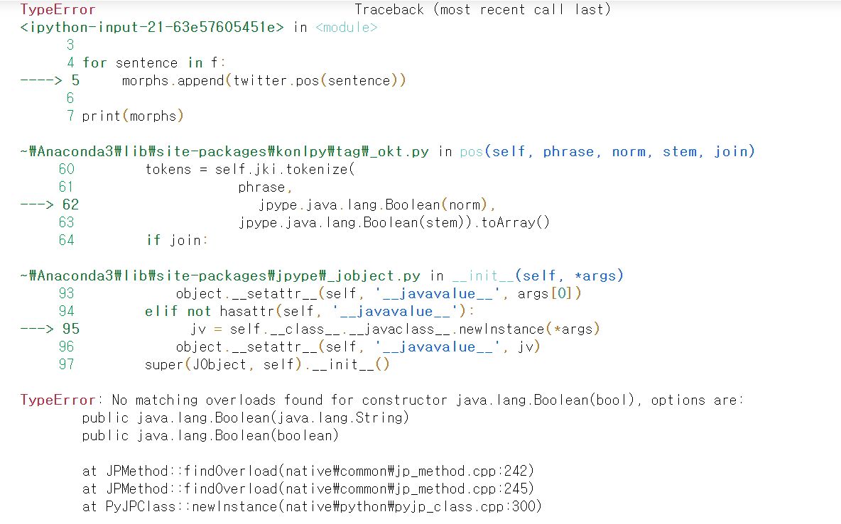 주피터 노트북으로 자바를 불러올 때, Konlpy 쓸 때! 발생하는 오류
